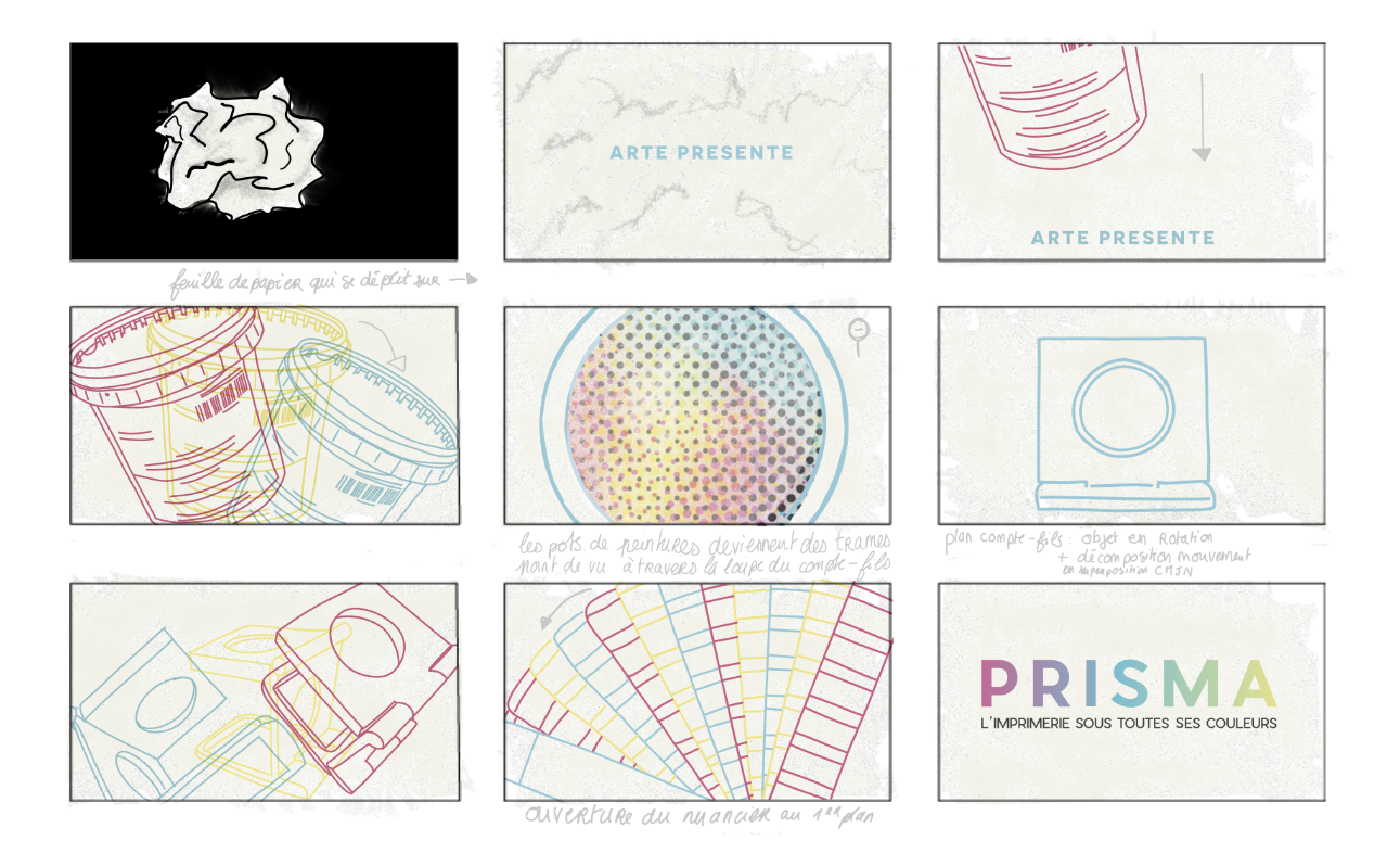 Les objets de l’imprimerie prennent vie grâce à la technique de stop-motion. Ils se mélangent et se superposent à la manière des couleurs dans l’impression.